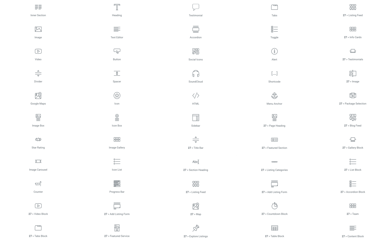 All elementor widgets